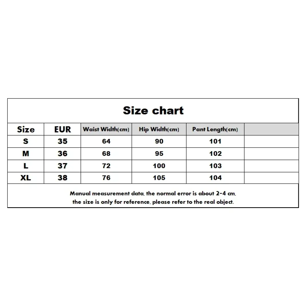 | Size | EUR | Waist Width (cm) | Hip Width (cm) | Pant Length (cm) |