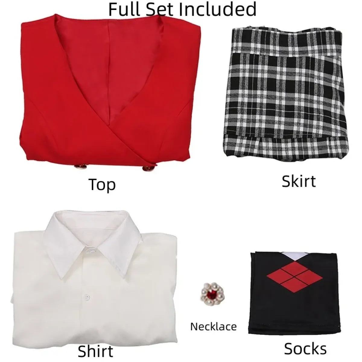 - Complete Set: Includes top, skirt, shirt, and necklace for a head-to-toe transformation.